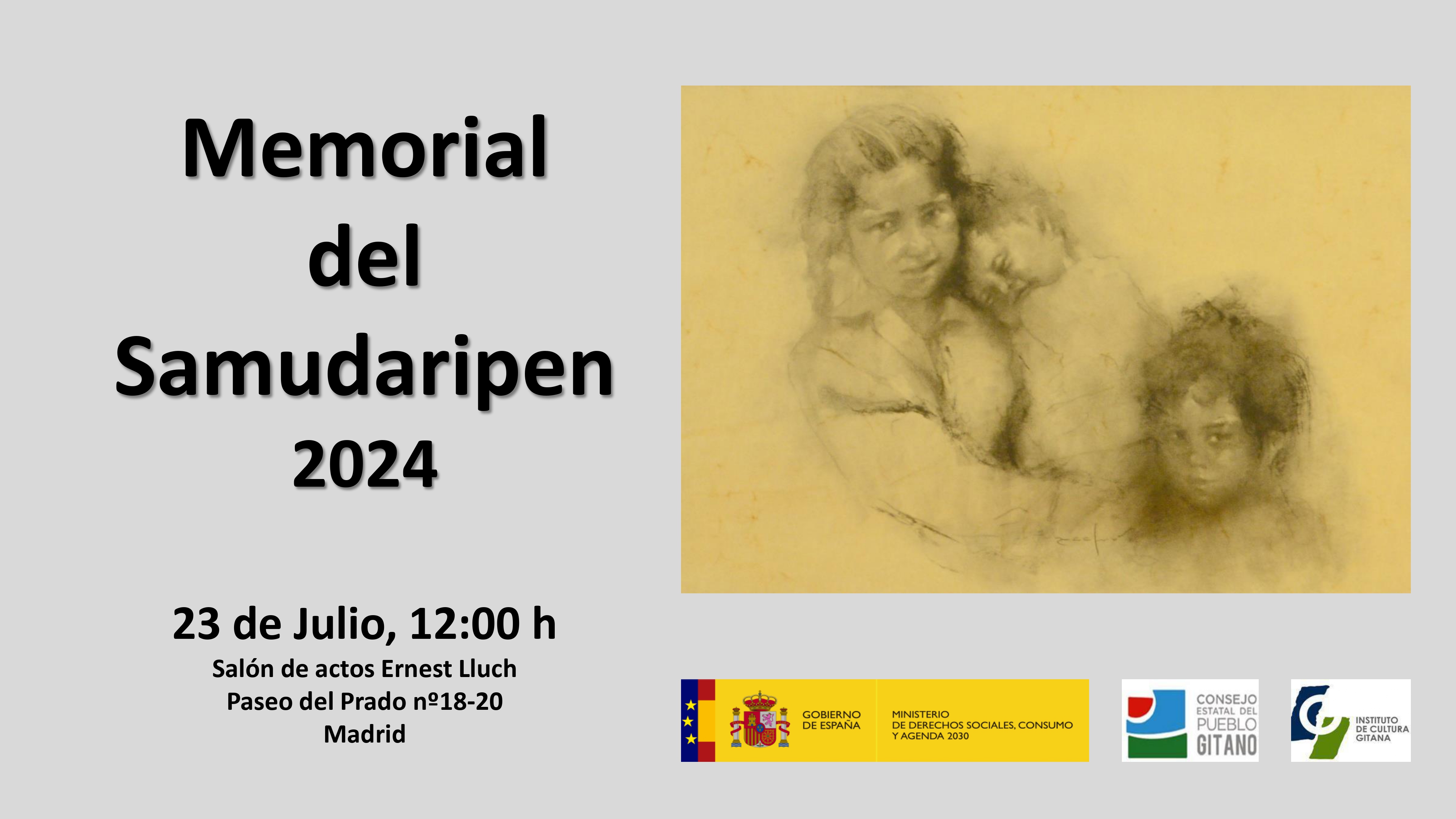 De nuevo, el Consejo Estatal del Pueblo Gitano, en colaboración con el Ministerio de Derechos Sociales y Agenda 2030, participa en la conmemoración a las víctimas gitanas que sufrieron los trágicos acontecimientos históricos de la Gran Redada, también conocida como Prisión General de Gitanos, ocurrida el 30 de julio de 1749, así como a las personas gitanas que también fueron víctimas del Holocausto. La noche del 2 al 3 de agosto de 1944 miles de personas gitanas fueron masacradas en el campo de concentración de Auschwitz-Birkenau. Este año 2024, se ha elegido como lugar para la conmemoración el salón de actos Ernest Lluch, sito en los interiores del Ministerio de Derechos Sociales, Consumo y Agenda 2030, cuya sede se localiza en el Paseo del Prado.