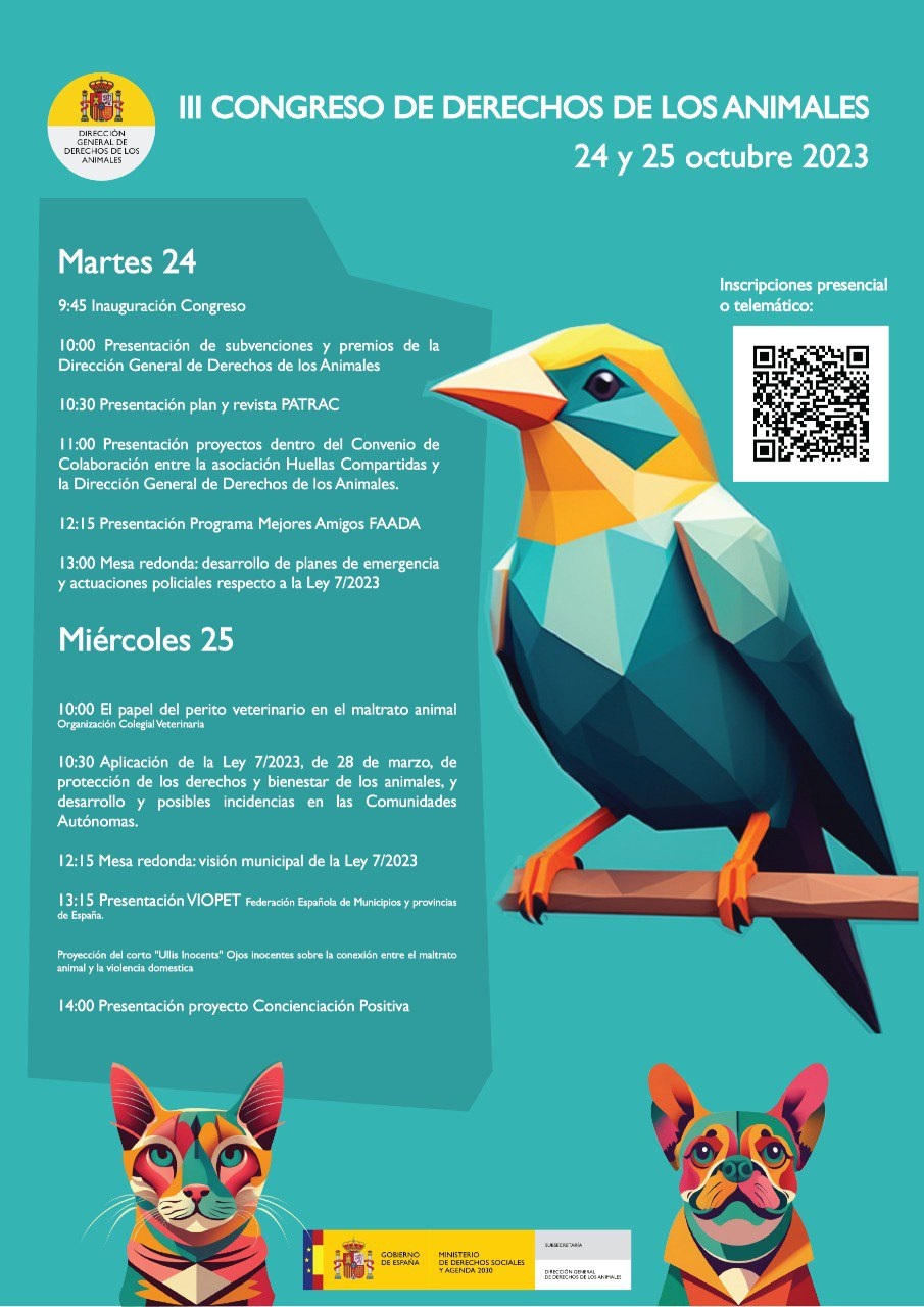 Desde la Dirección General de Derechos de los Animales, del Ministerio de Derechos Sociales y Agenda 2030, se pone en marcha la tercera edición del Congreso de Derechos de los Animales.