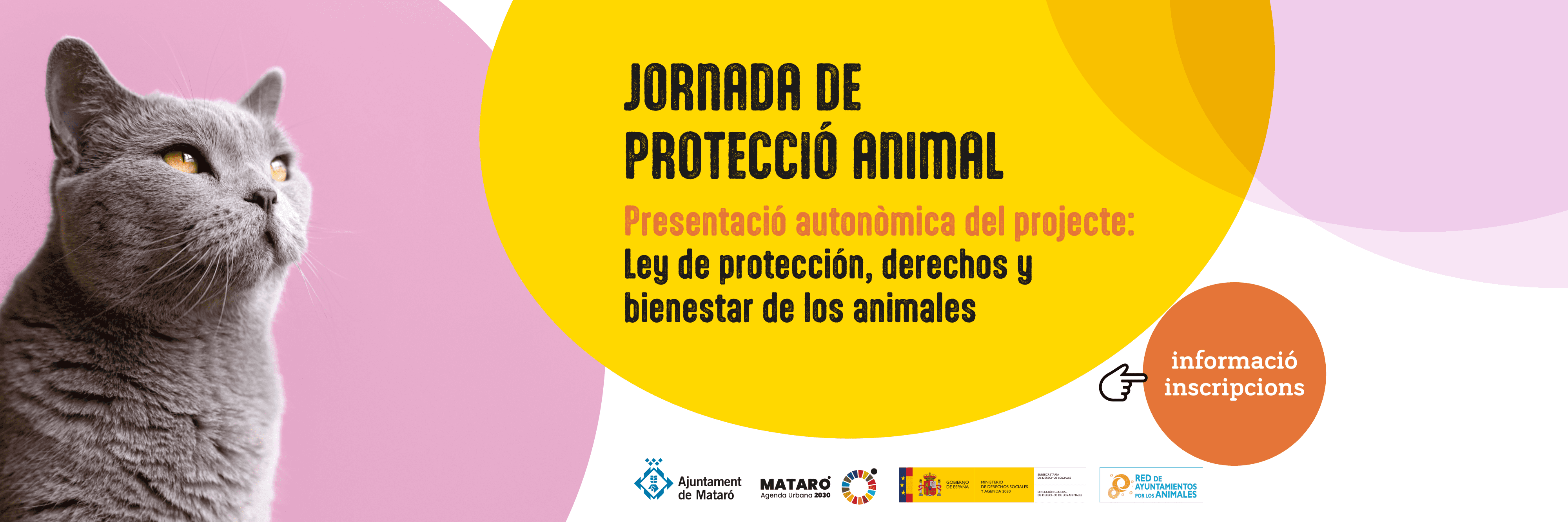El Ayuntamiento de Mataró y la Dirección General de Derechos de los Animales organizan una “JORNADA DE PROTECCIÓ ANIMAL: Presentació autonòmica del Proyecto de Ley de Protección, Derechos y Bienestar de los Animales”. Se desarrollará el 23 de septiembre en el Tecnocampus Mataró, Auditori del Tecnocampus, Avinguda Ernest Lluch, 32 (Porta Laietana).